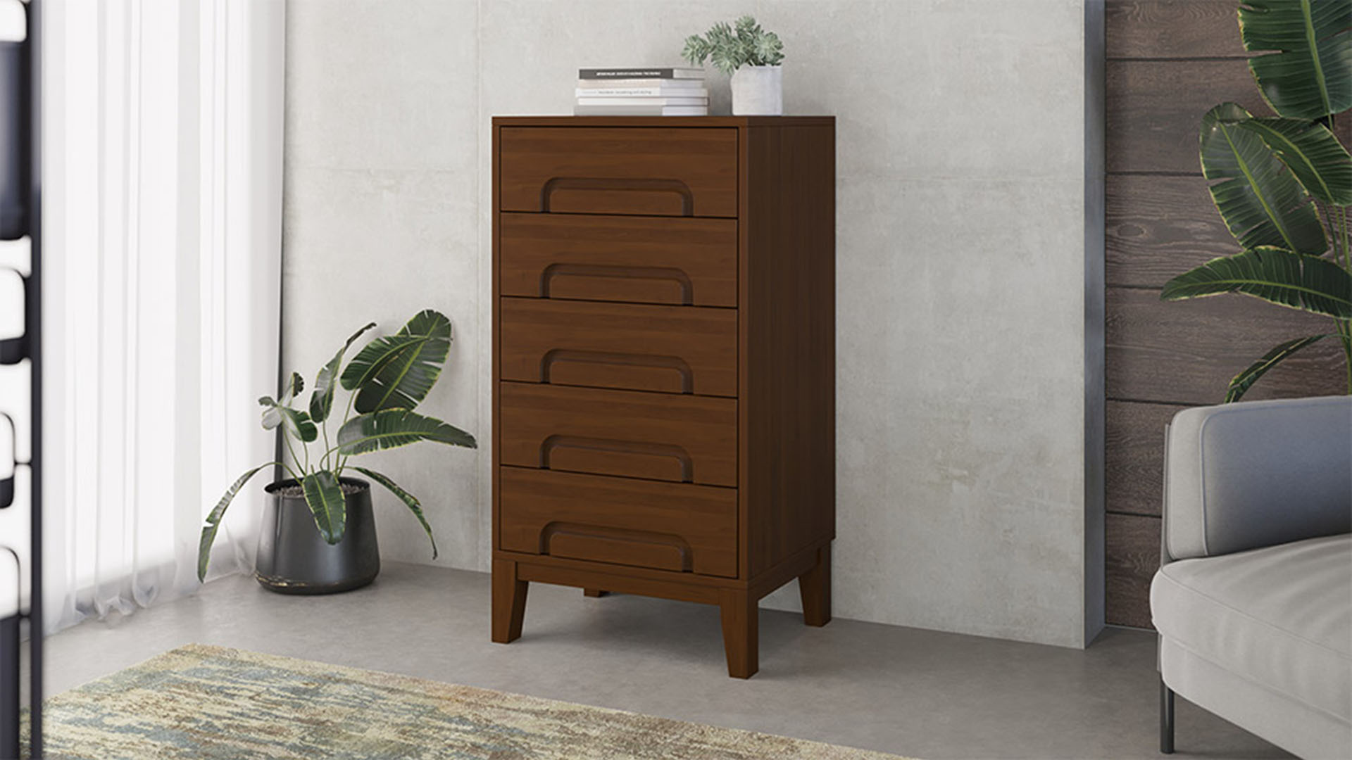 На выбор предлагаются актуальные цвета древесины, в том числе оттенки орех и груша. Купить изделия возможно в стандартной и индивидуальной комплектации. Под заказ изготавливаются комоды с другими параметрами по высоте, с дополнительным ящичком и автодоводчиками закрытия, что несущественно сказывается на цене.