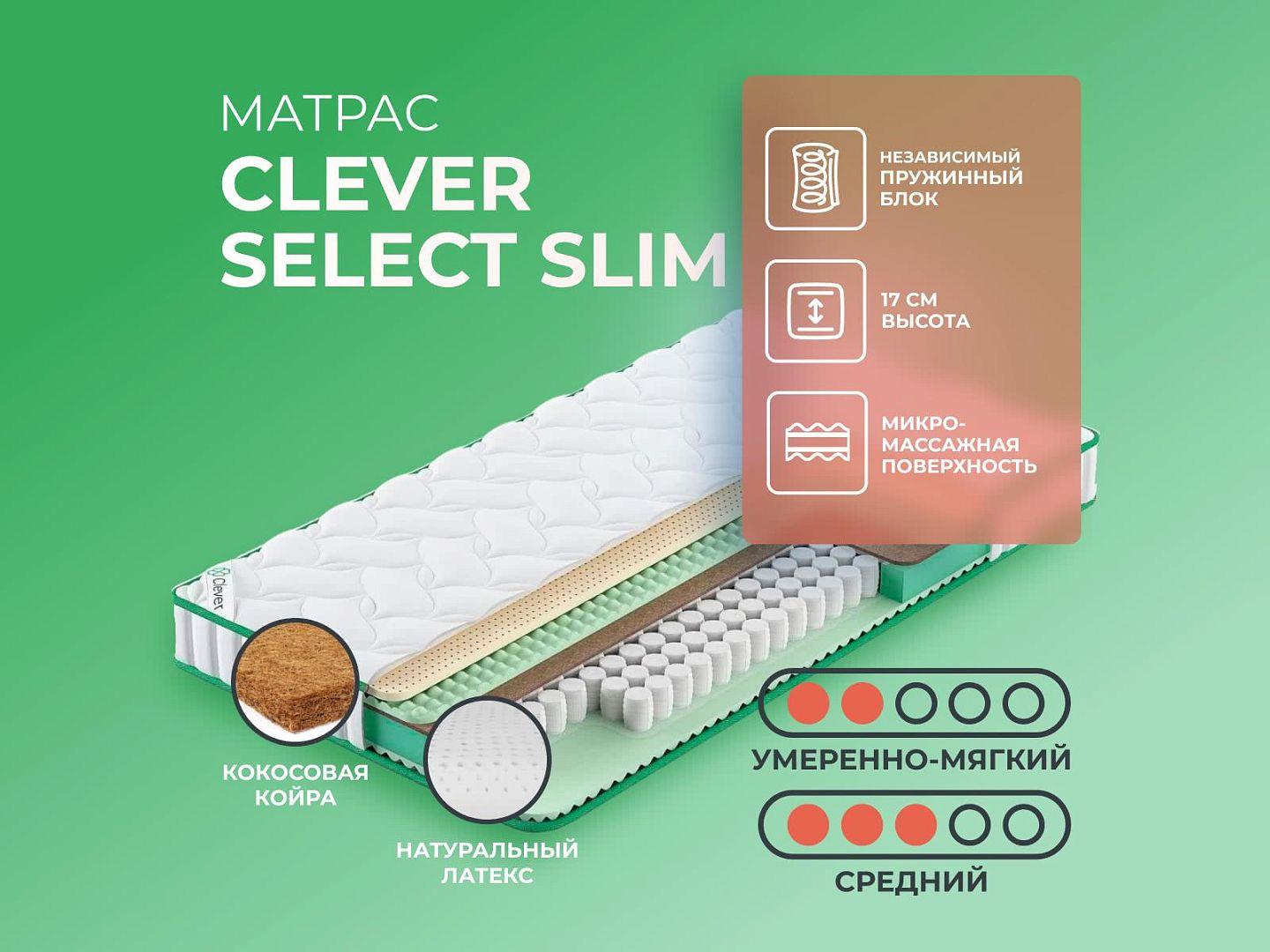 Интернет-магазин Dream-Expert.ru представляет матрас Clever Select Slim 90x200 производства фабрики Clever. Купить данную модель — значит обеспечить себе здоровый позвоночник и комфортный сон на долгие годы.