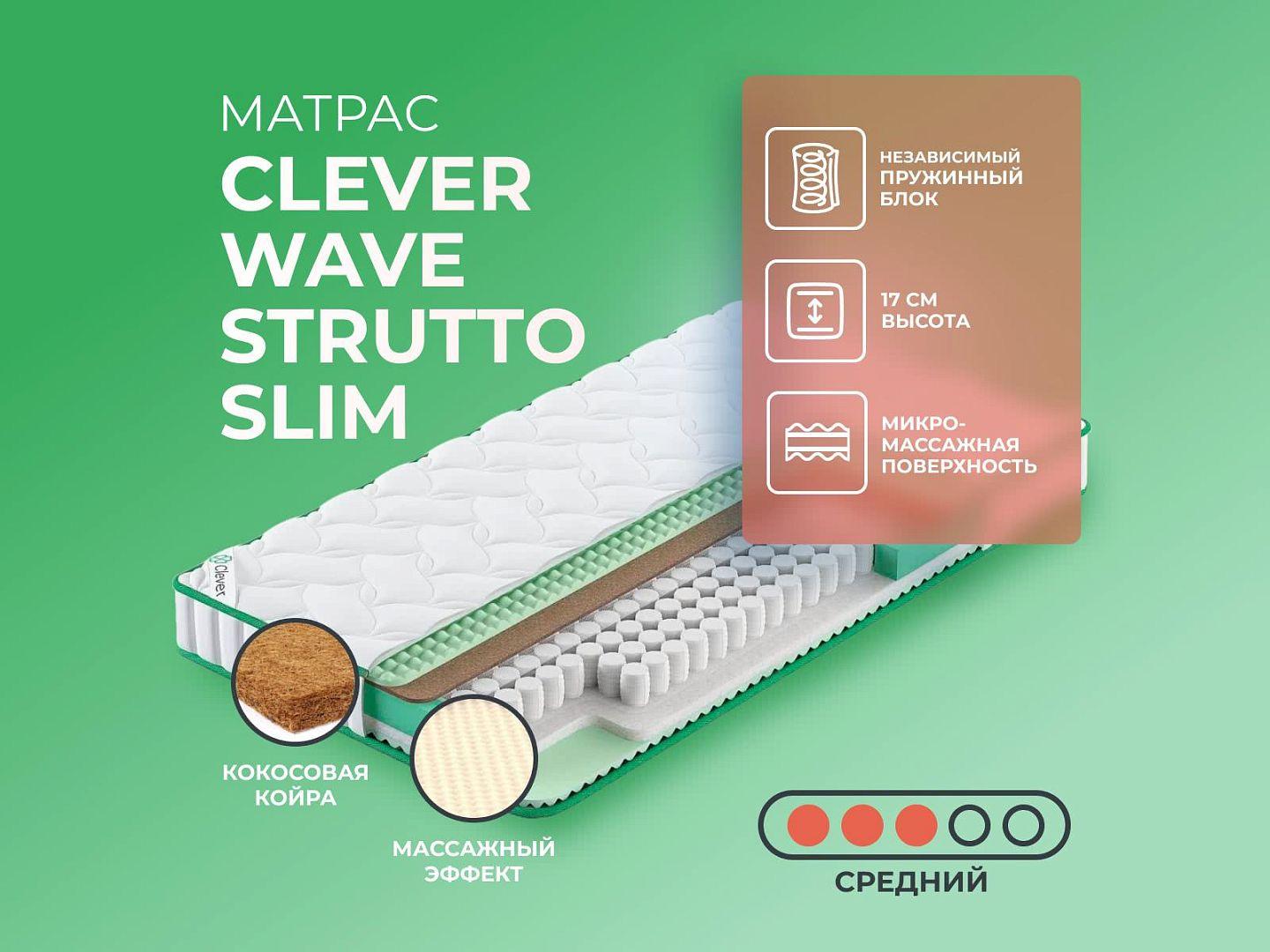 Интернет-магазин Dream-Expert.ru представляет матрас Clever Wave Strutto Slim 80x195 производства фабрики Clever. Купить данную модель — значит обеспечить себе здоровый позвоночник и комфортный сон на долгие годы.