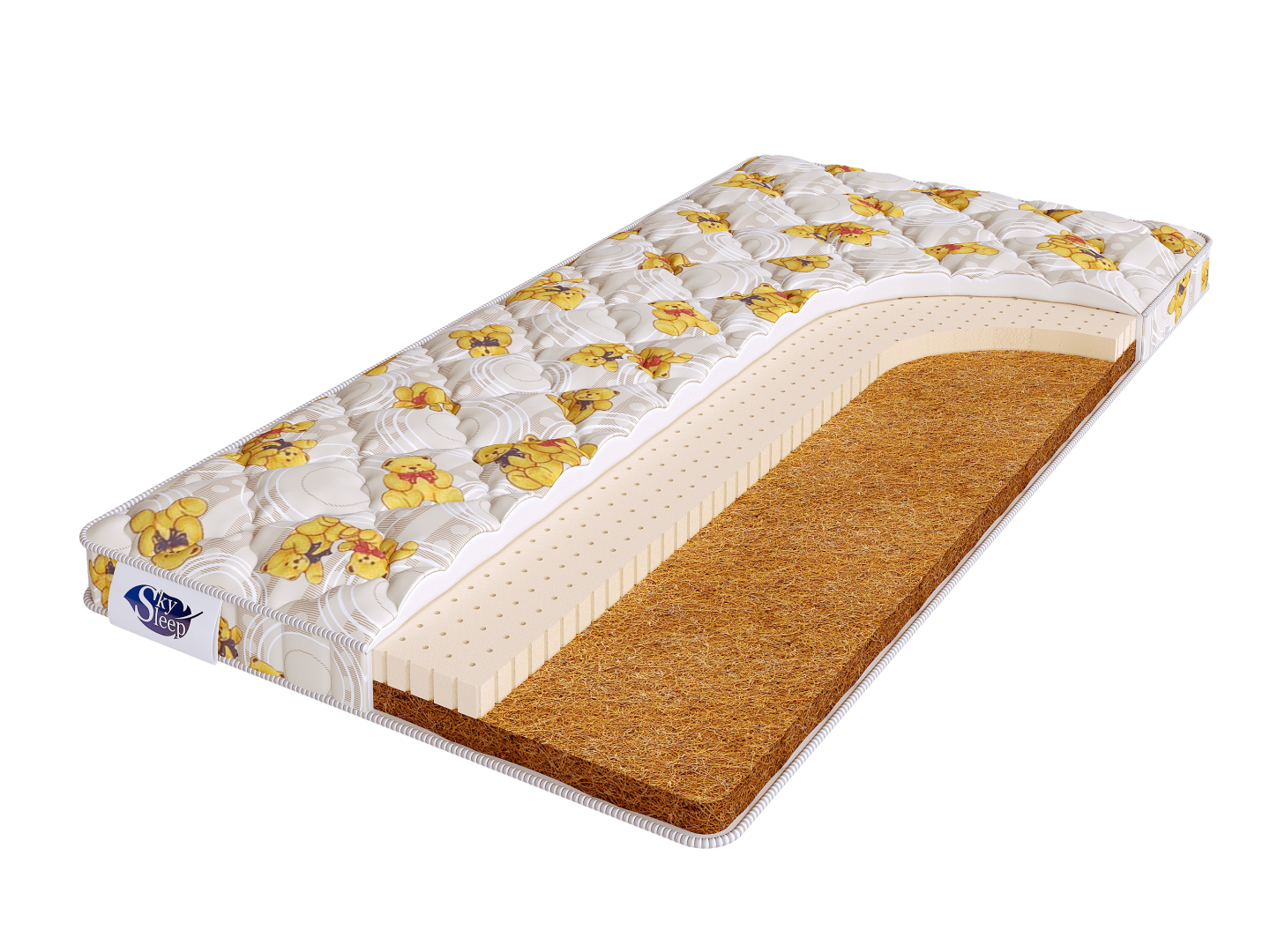 Беспружинный детский матрас KIDDY Mix Mini выполнен из экологичных материалов – натурального латекса и кокосовой койры. Матрас обладает разным уровнем жесткости сторон. Сторона, выполненная из кокосовой койры обеспечивает жесткую поддержку спины, что положительно сказывается на правильном формировании детской осанки, а натуральный латекс смягчает поверхность и делает сон на матрасе невероятно комфортным. Оба материала отлично вентилируются, что предотвращает скопление влаги и пыли в матрасе и позволяет поддерживать микроклимат спального места в идеальном состоянии.