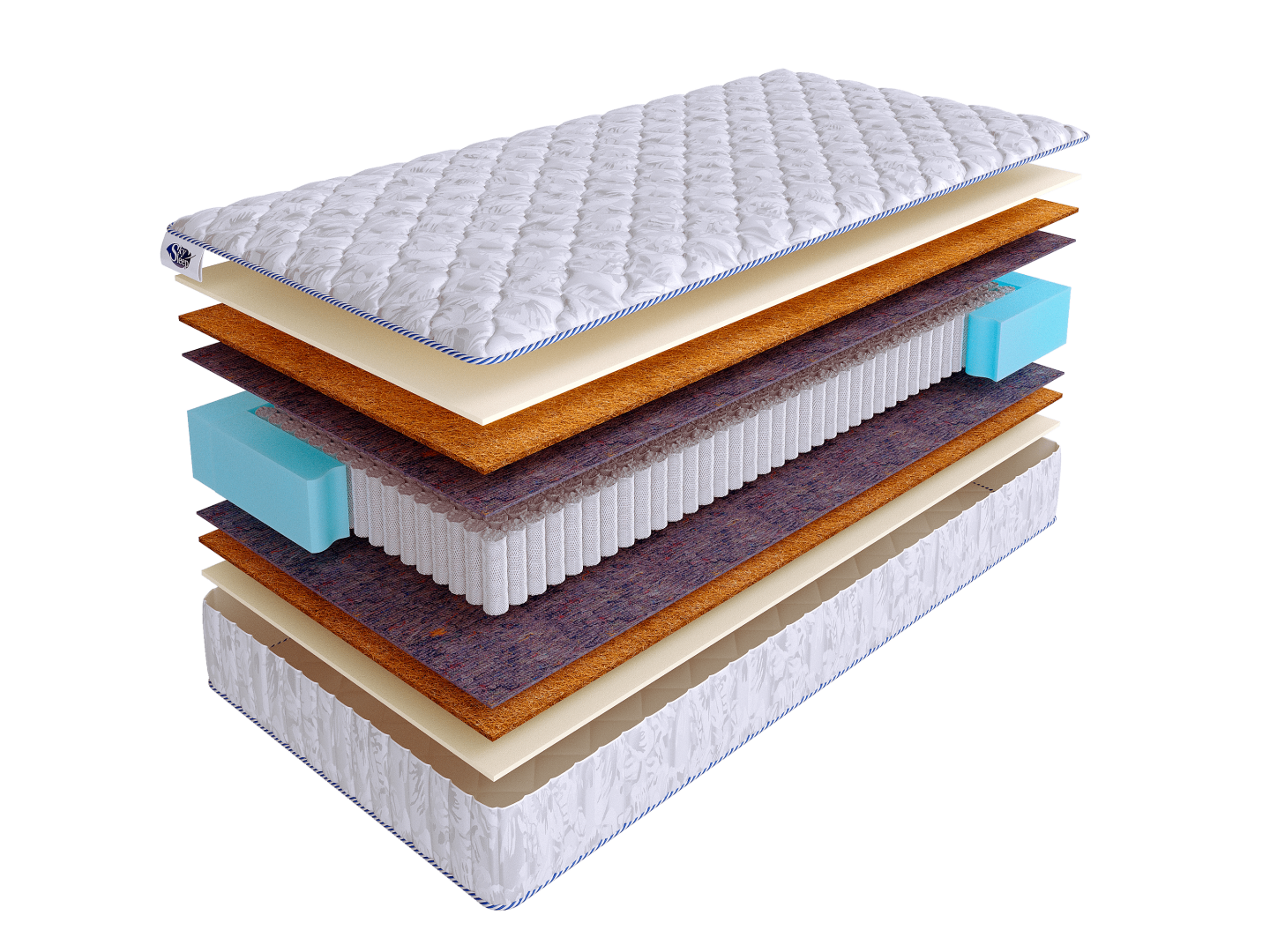 Чехол матраса выполнен из хлопкового жаккарда, простеганного на 100 г. синтепона.