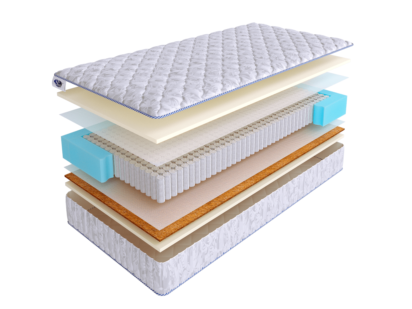 Универсальная модель START MEDIUM SOFT S1000 средней жесткости подойдет для широкого круга покупателей. В ее состав входят, как натуральные, так и искусственные материалы. Латексированная кокосовая койра, расположенная с одной стороны матраса придает матрасу жесткость и способствует равномерной нагрузке на пружинный блок. Кокосовые волокна обладают бактерицидными свойствами, обеспечивая гигиеничность спального места. А искусственный латекс смягчает поверхность матраса и делает сон на нем максимально комфортным и удобным. Это искусственный материал, максимально схожий по своим свойствам с натуральным латексом и имеющий высокие адаптационные свойства. Он в точности повторяет контуры тела спящего человека во время отдыха и легко восстанавливает форму после сна.