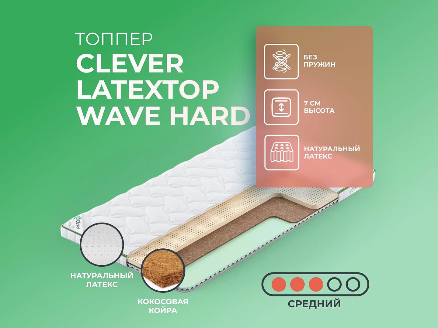 Фабрика Clever получила заслуженную репутацию, благодаря применению новых технологий и безупречному соблюдению стандартов качества. Топпер Clever LatexTop Wave Hard — образец продукта с лучшими характеристиками и доступной ценой, матрас создан из дышащих тканей, с эффектом вентиляции.