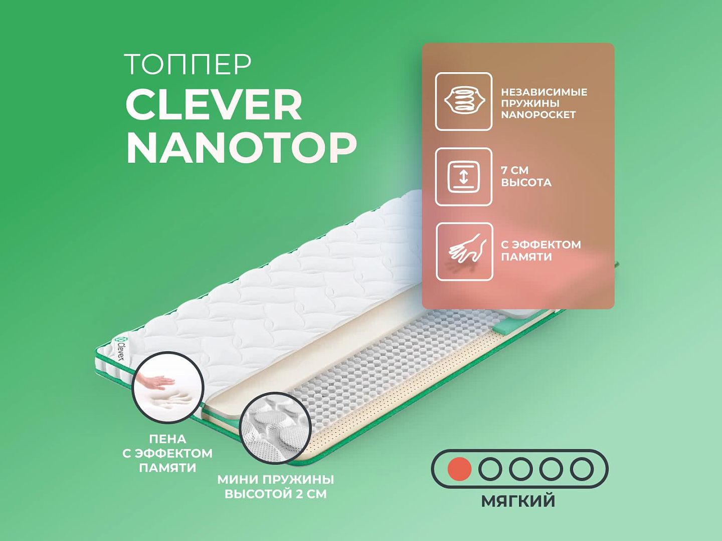 Интернет-магазин Dream-Expert.ru представляет матрас Топпер Clever NanoTop 90x200 производства фабрики Clever. Купить данную модель — значит обеспечить себе здоровый позвоночник и комфортный сон на долгие годы.
